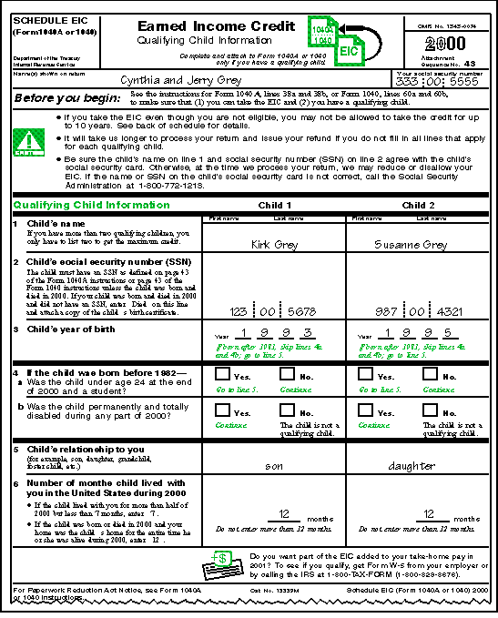 Cynthia and Jerry have the 2000 Form 1040A and instructions. They