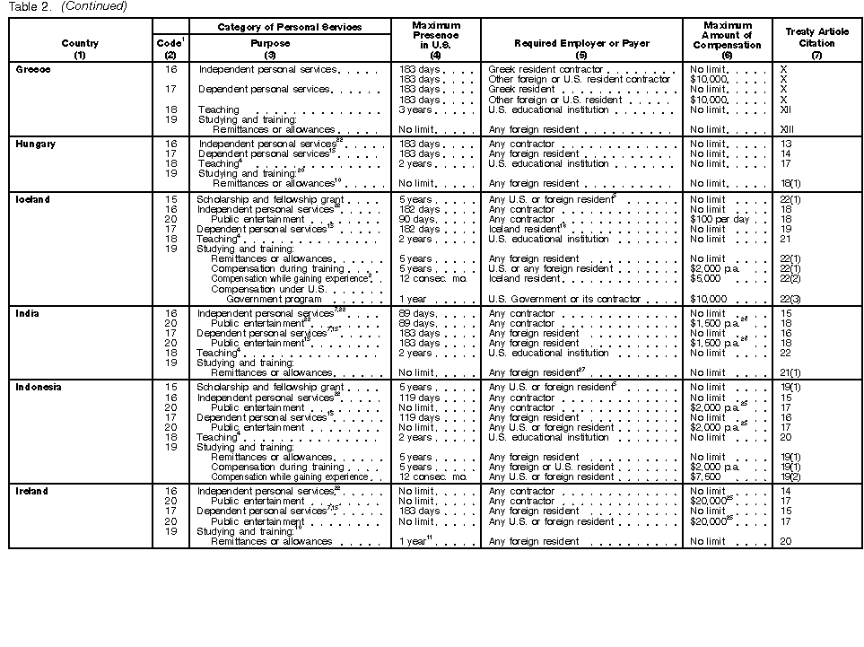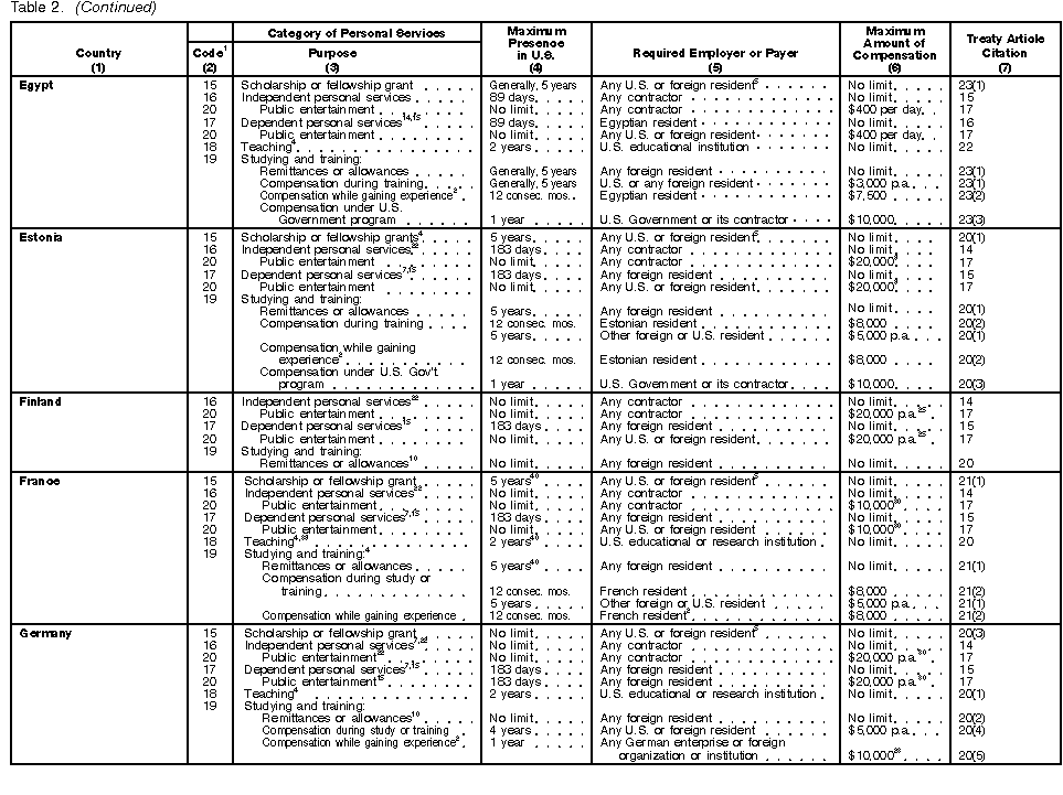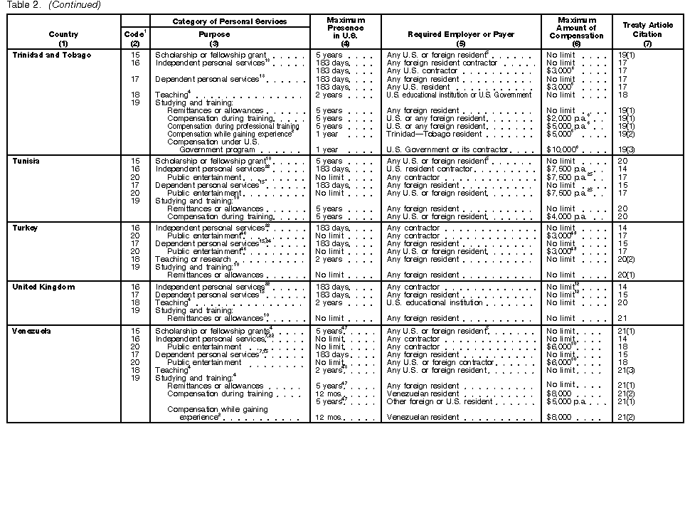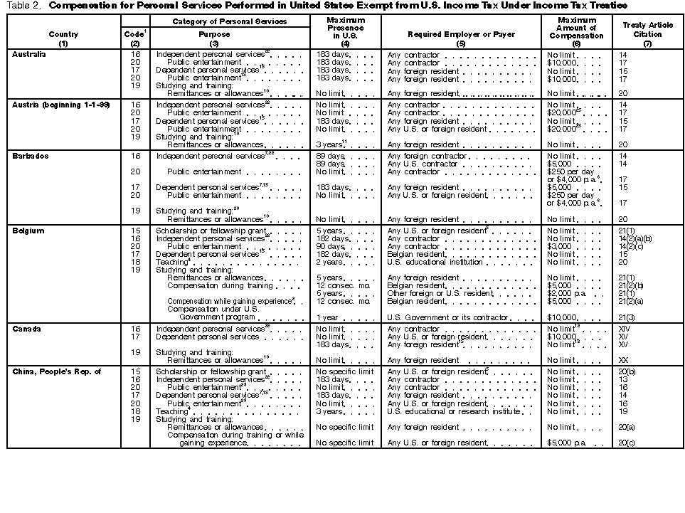 Table 2. Compensation for Personal Service Performen in United States Exempt from U.S. Income Tax Under Income Tas Treaties