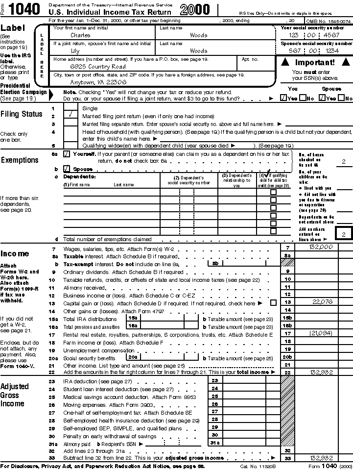 wages, $132,000, on Form 1040. They complete line 8 of Schedule D