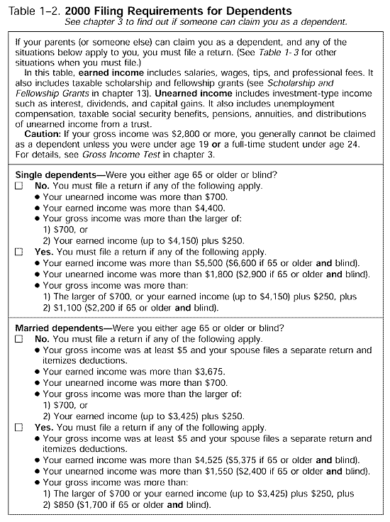 Table 1-2 Filing Req for Dependents