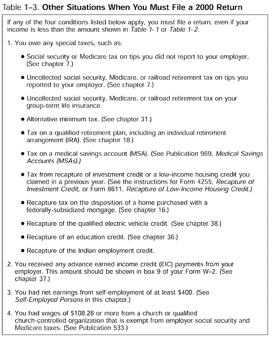 Table 1−3 Other Situations When You Must File