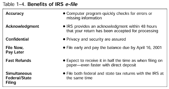 Table 1-4 Benefits of e-file