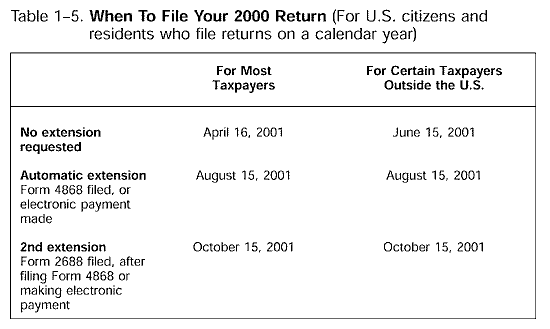 If you have a balance due with your return, you must pay it by April 16, 2001, to avoid late-payment penalties and interest. You can make your payment electronically by direct debit to your checking or savings account or by credit card.