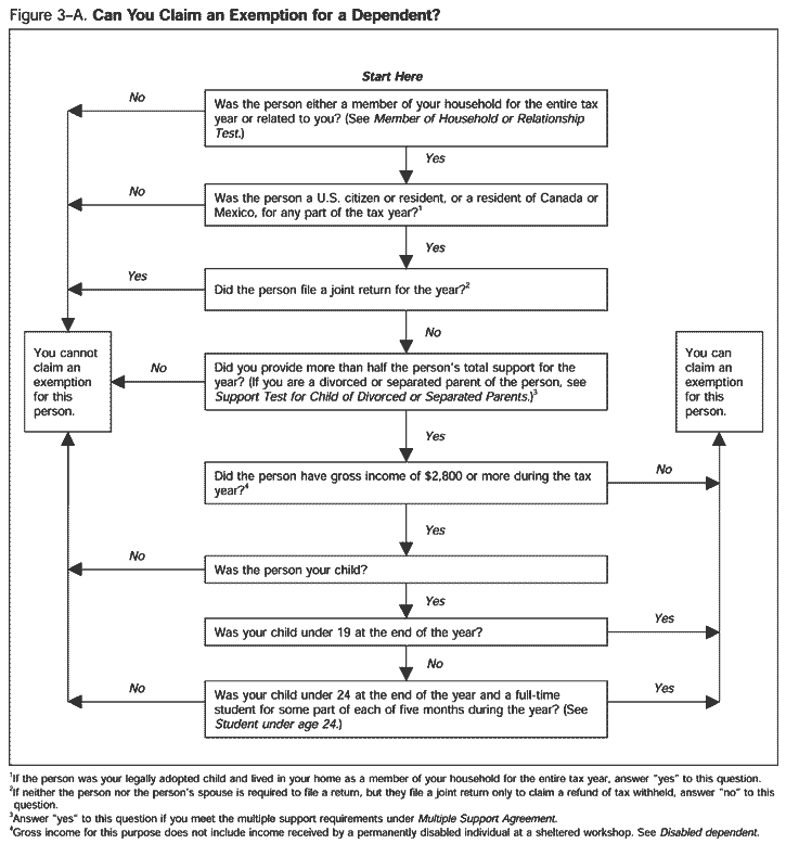 Generally, you cannot take an exemption for a dependent if that person had gross income of $2,800 or more for 2000. This test does not apply if the person is your child and is either: