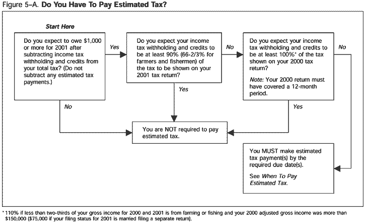 If you had a tax liability for 2000, you may have to pay estimated tax for 2001. Figure 5-A Do You Have To Pay Estimated Tax?