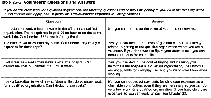 Table 26-2 contains questions and answers that apply to some individuals who volunteer their services.