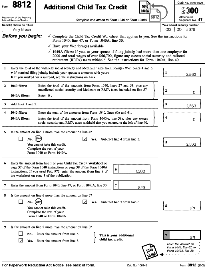 - If you have an additional child tax credit on line 9 of Form 8812, carry it to line 62 (Form 1040) or line 39 (Form 1040A).