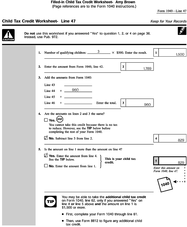 - The amount on line 1 of your Child Tax Credit Worksheet is $1,500 or more.