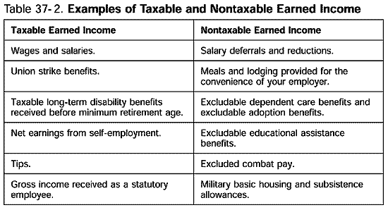 Table 37-2. Examples of Taxable and Nontaxable Earned Income