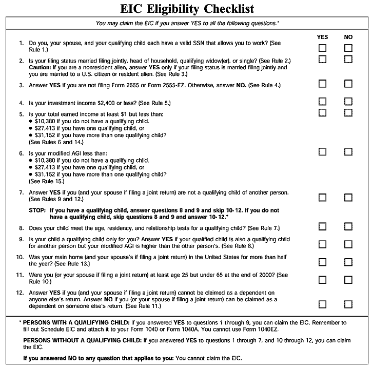 - You must expect that your earned income and modified AGI will each be less than a certain amount. The amount in 2000 was $27,413. The amount for 2001 will be higher. (See the 2001 Form W-5 for the 2001 amount.)