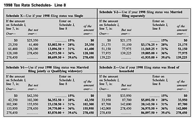 Schedule J, 1998 Tax Rate Schedules, Line 8