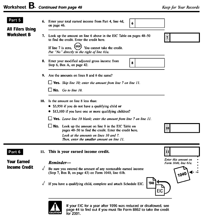 Worksheet B - Earned Income Credit (EIC) (cont.)