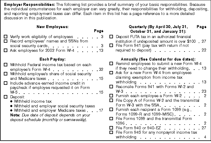 Ask each new employee to complete the 2002 Form W-4. (See section 9.)