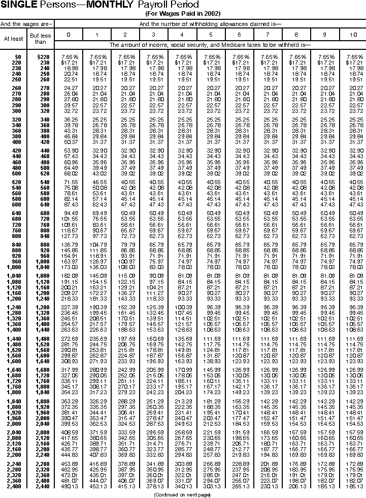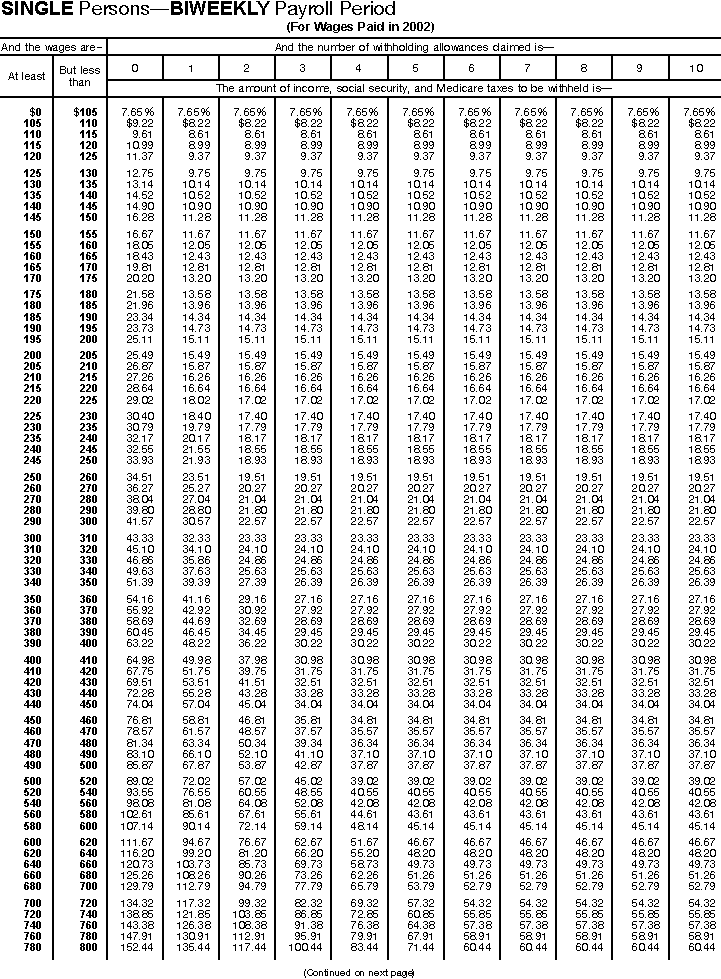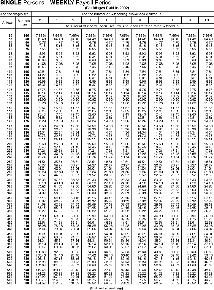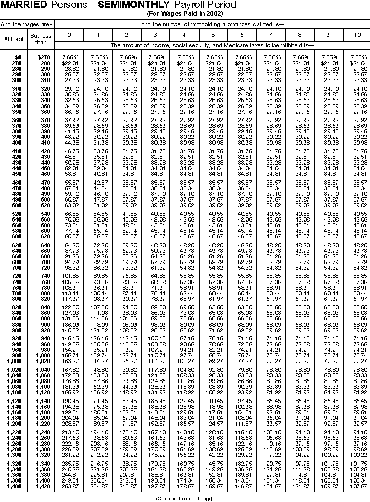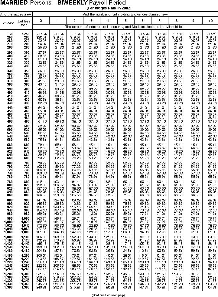 payroll periods. The payroll period and marital status of the employee determine the table to be used.