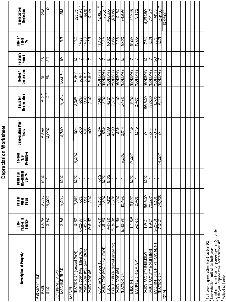 Worksheet that follows Form 4562. Mr. Brown has filed all