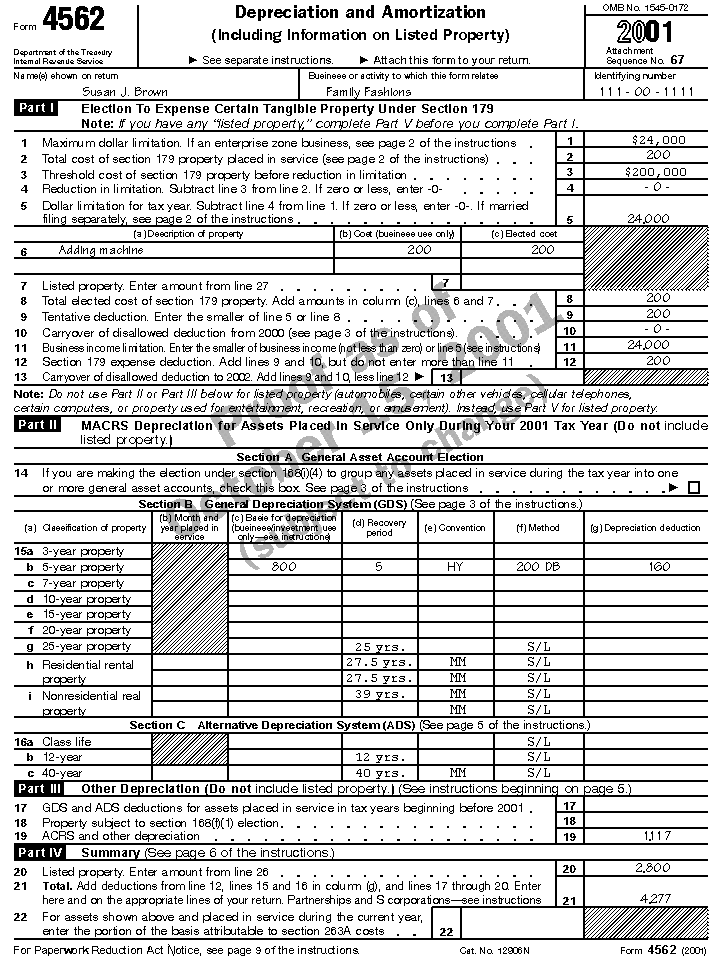 Page 1 of Form 4562 for Susan J. Brown