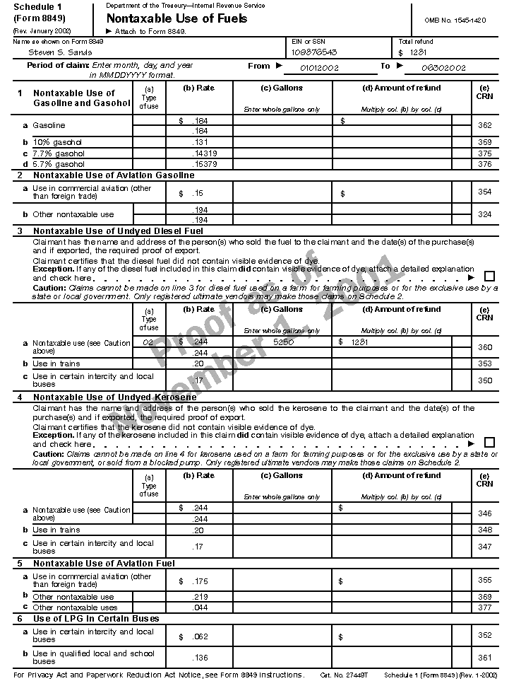 registered) for highway use. In the fourth quarter of his 2001 income tax year, which ends in December, he used 3,000 gallons of fuel. The excise tax