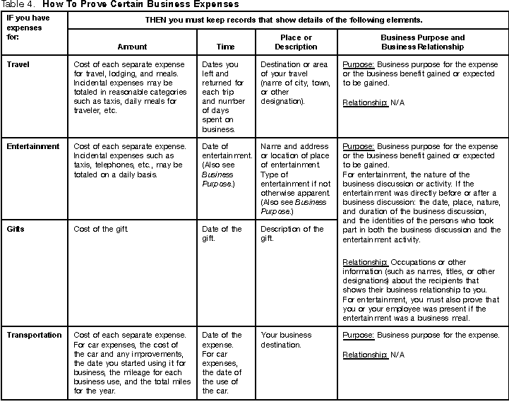 Table 4. How To Prove Certain Business Expenses