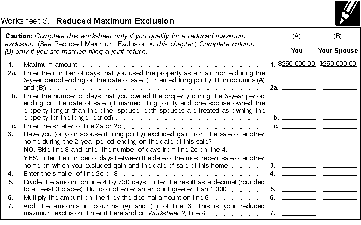 Worksheet 1. Adjusted Basis of Home Sold and Worksheet 2. Gain (or Loss), Exclusion and Taxable Gain