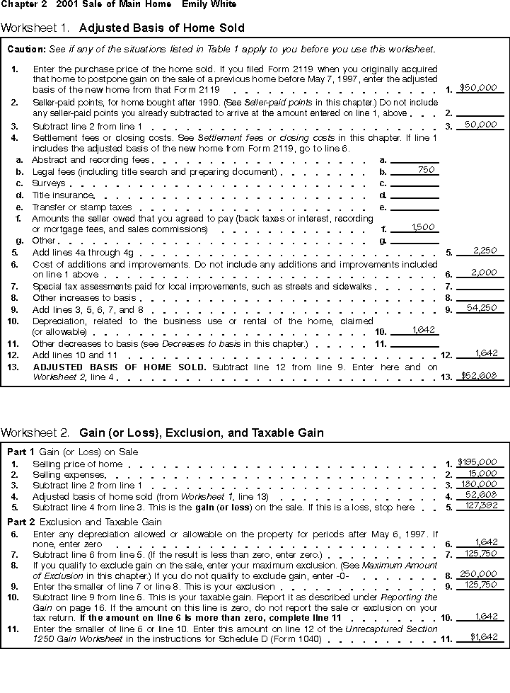 of the home she sold ($52,608). She uses Worksheet 2 to