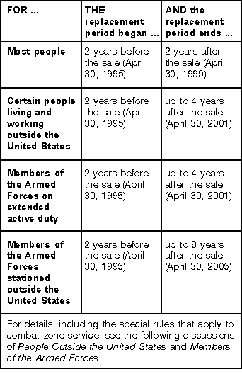 You sold your home on April 11, 1997. This began your replacement