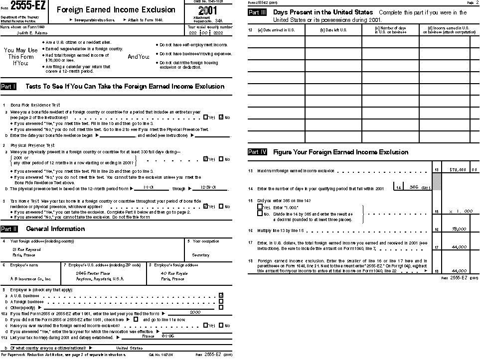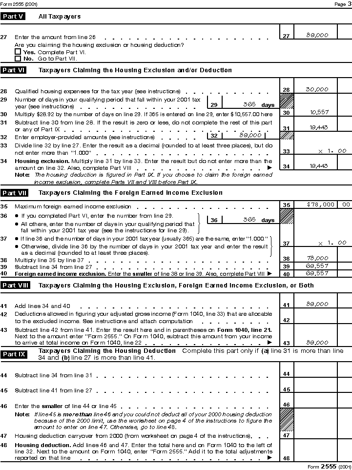 fill out Parts I, III, IV, and V of Form 2555. When filling out Part