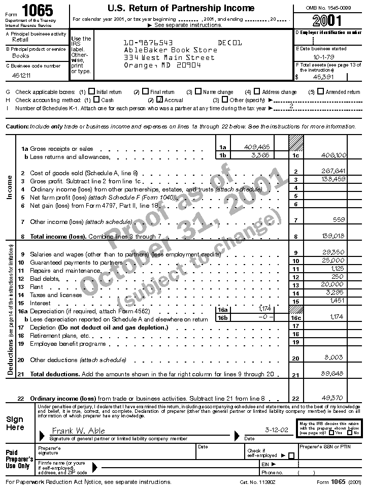 Frank signs the return as a general partner. The AbleBaker Book Store did not have a paid preparer.