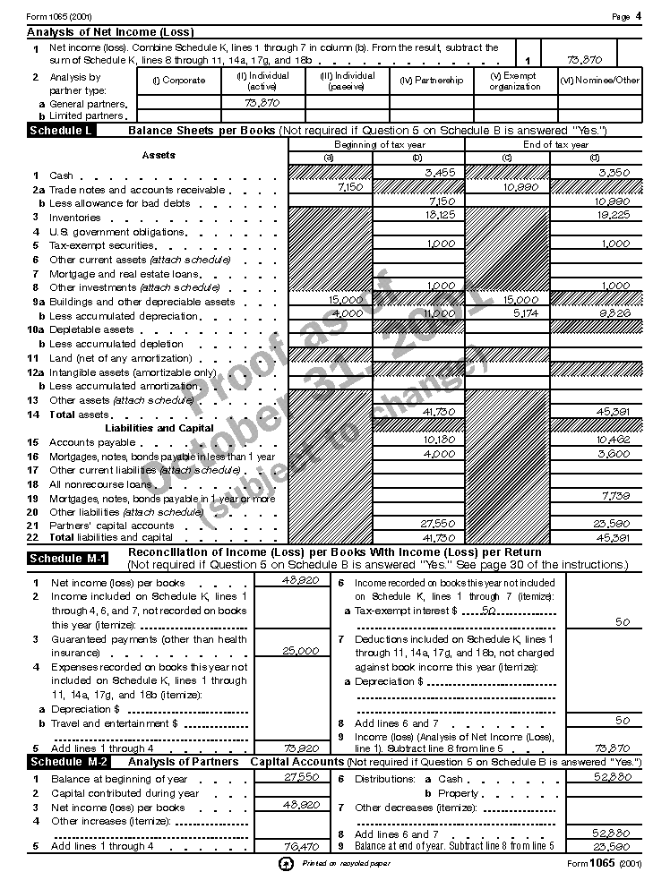 Schedule M-2 is an analysis of the partners' capital accounts. It shows the total equity of all partners at the beginning and end of the tax