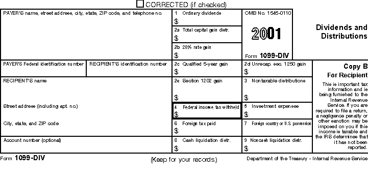 If you received dividends as a nominee in 2001, you must file a Form 1099-DIV for those dividends with the IRS. Send the Form 1099-DIV