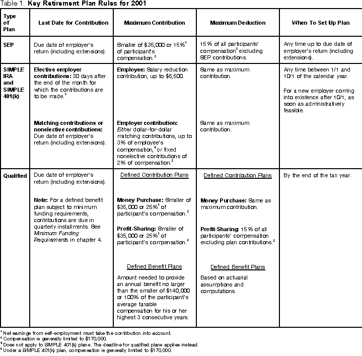 Basic features of SEP, SIMPLE, and qualified plans are discussed below. The key rules for SEP, SIMPLE, and qualified plans are outlined in