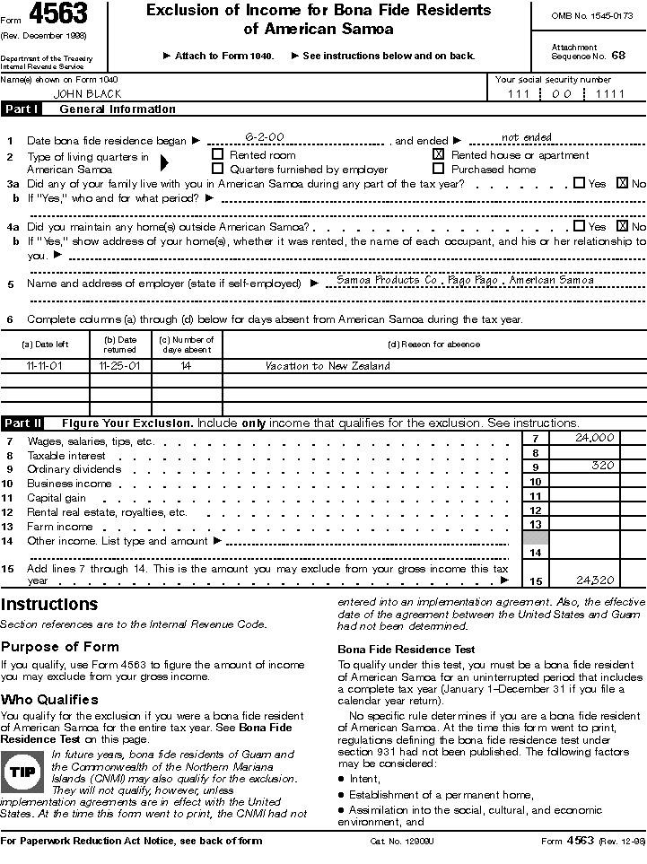 John Black is a U.S. citizen and was a bona fide resident of American Samoa during all of 2001. He has to file Form 1040 because his gross income