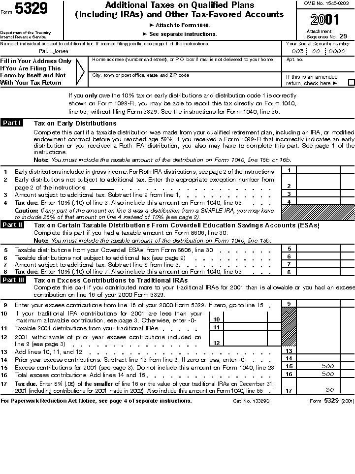 If you do not have to file a Form 1040 but do have to pay one of the IRA taxes mentioned earlier, file the completed Form 5329 with the IRS at the