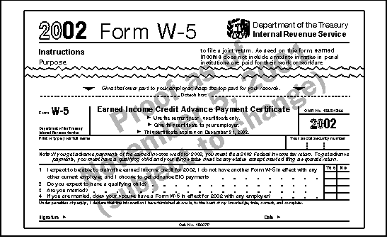 You can receive part of your 2002 EIC in your paycheck by completing a form and giving it to your