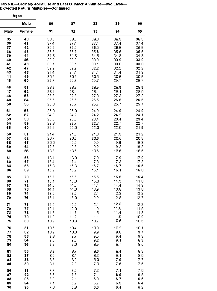 Table II. Ordinary Joint Life and Latest Survivor Annuitee - Two Lives - Expected Returns Multiples