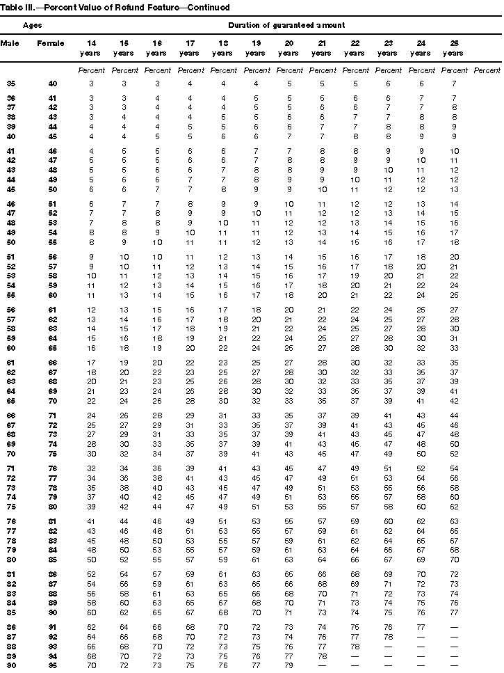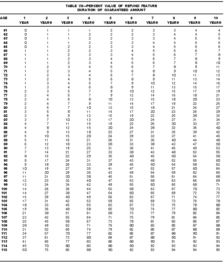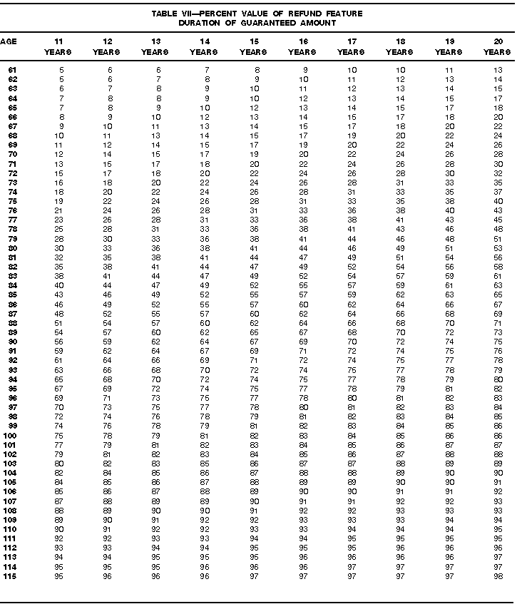 Table VII. Percent Value of Refund Feature - Duration of Guaranteed Amount