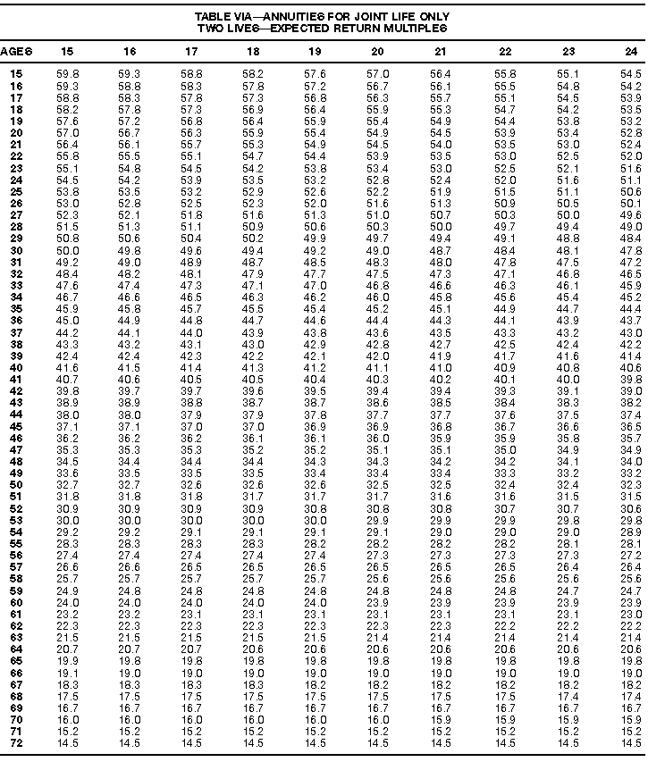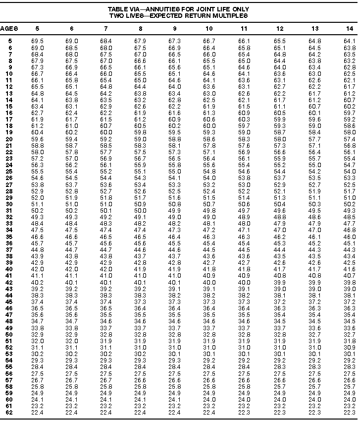 Table VIa. Annuities for Joint Life Only - Two Lives - Expected REturn Multiples