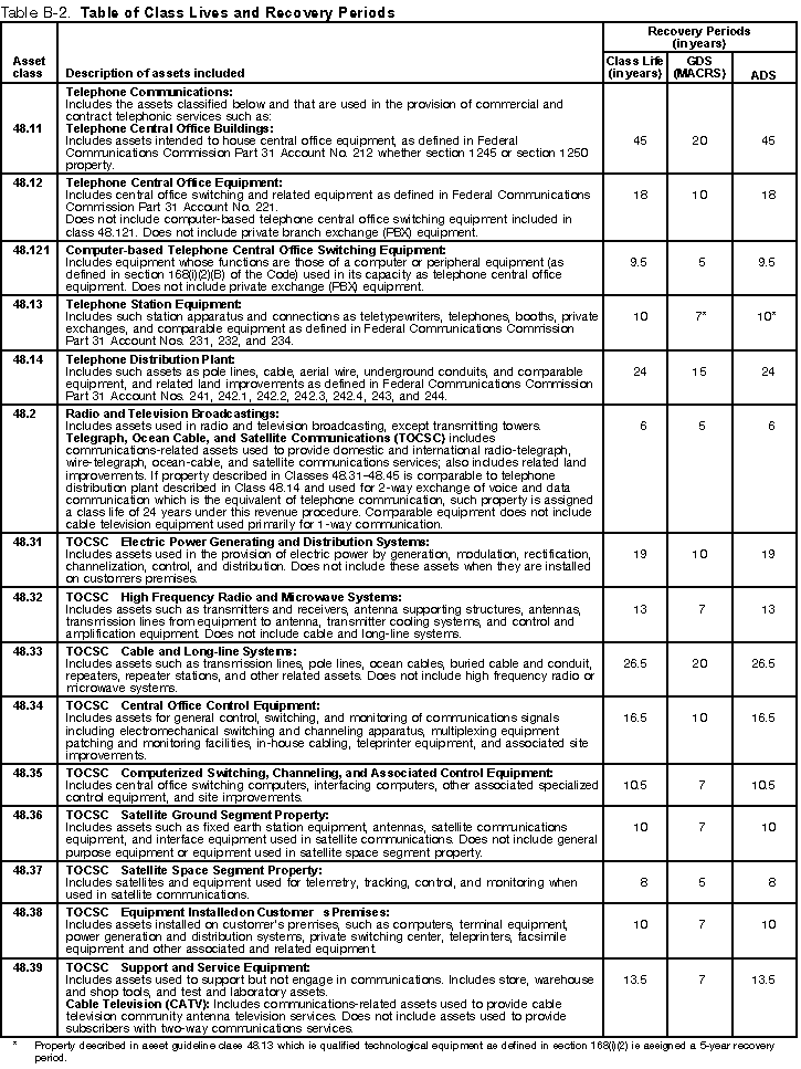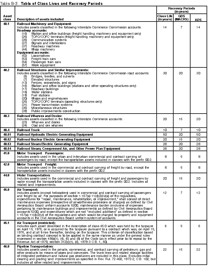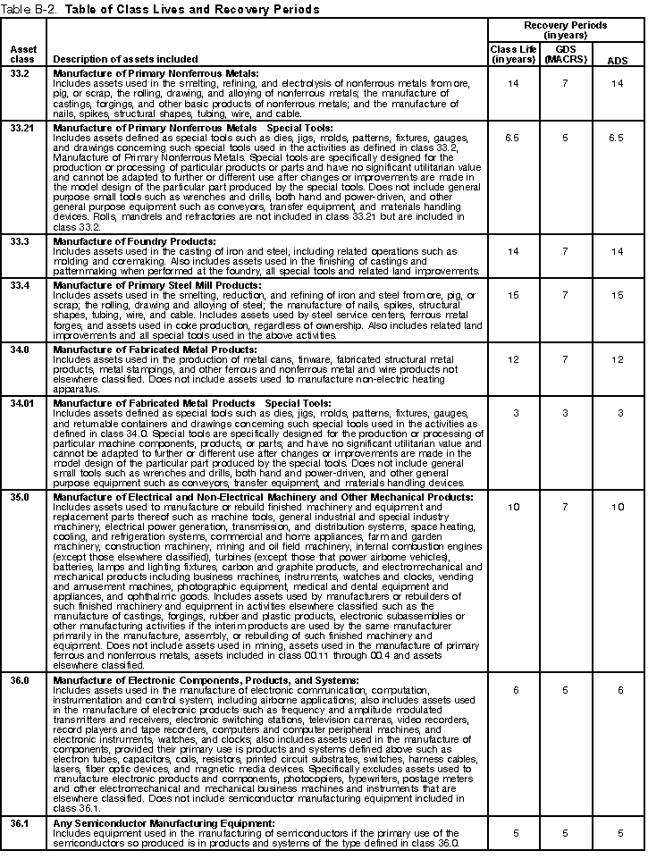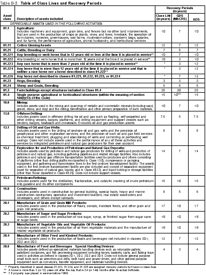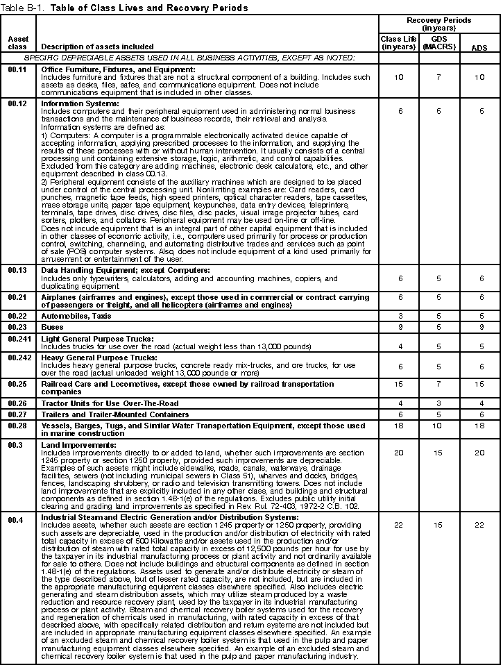 from that asset class, then use the recovery period shown in the appropriate column following the description of the property in Table B-1.