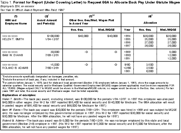 employee notifies the SSA (in a separate, special report) of the back