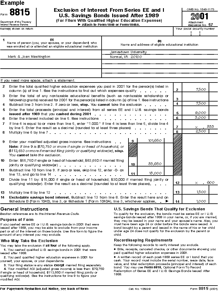 example, they can exclude $1,000 (line 14 of Form 8815 shown on the next page) of interest in 2001.