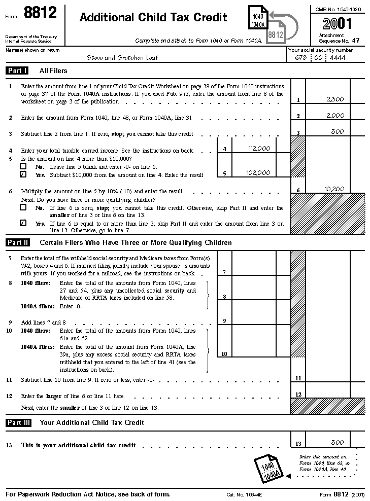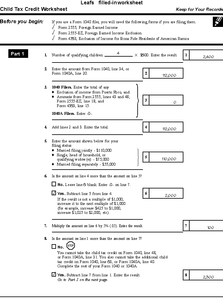 - They enter the amount from line 8 of their Child Tax Credit Worksheet ($2,300) on line 1.