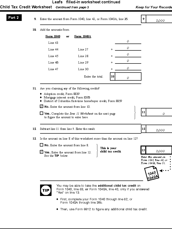 - They enter the amount from line 13 of their Child Tax Credit Worksheet ($2,000) on line 2.