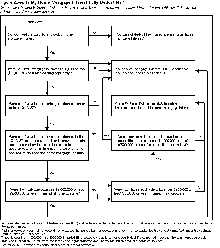 You can use Figure 25-A to check whether your home mortgage interest is fully deductible.