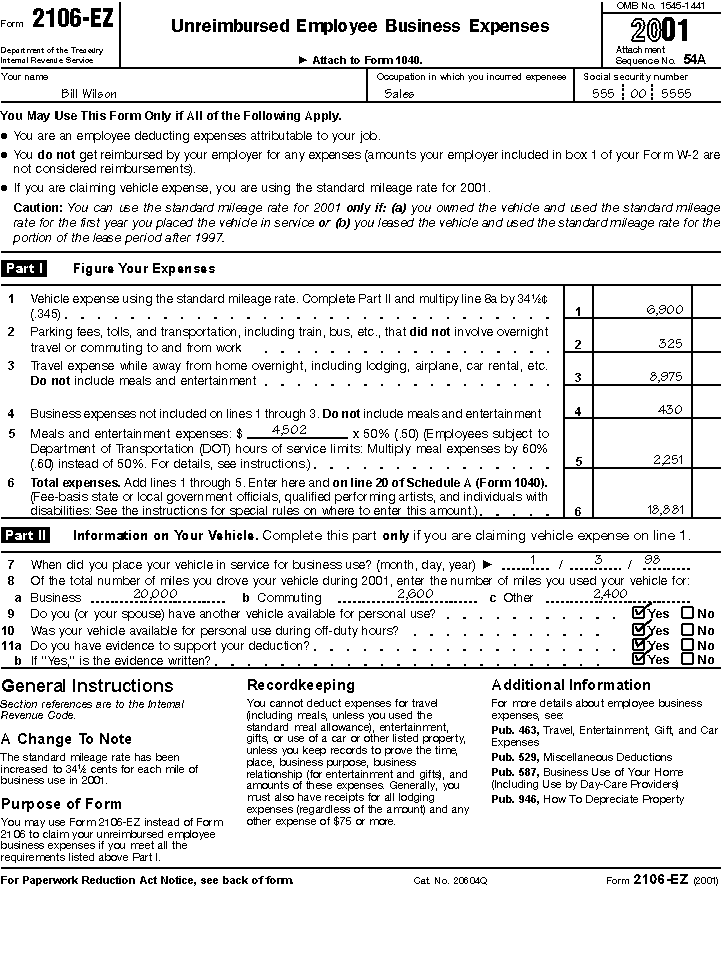 2106-EZ with his tax return. His filled-in form is shown on the next page.