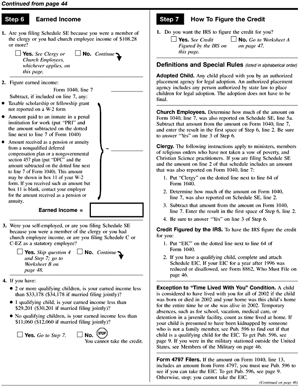 Tax Prep Help Archives > 2002 > 1040 Instructions > Form 1040 Instructions - Lines 64, EIC, Earned Income Credit, Steps 6 & 7