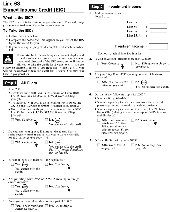 Lines 63 - Earned Income Credit (EIC)