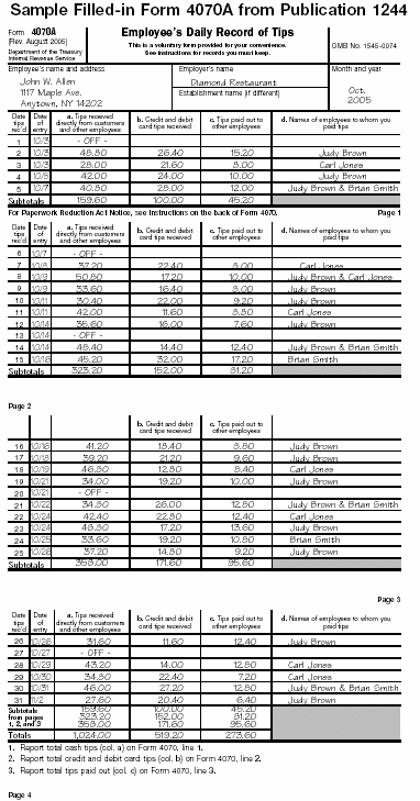 your employer. A sample filled-in Form 4070 is shown on this page. To get a year's supply of the form, ask the IRS or your