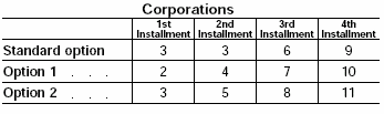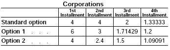 Corporations' Annualization Options. Summary: This table is used to provide the options of annualized installment periods elected by corporations to be entered