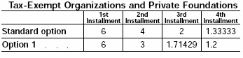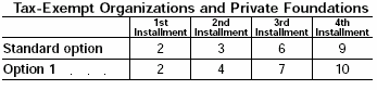 Tax-Exempt Organizations and Private Foundations: Annualization Options. Summary: This table is used to provide the options of annualized installment periods elected by tax-exempt organizations and